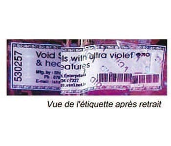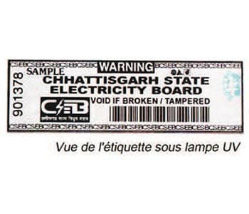 Une étiquettecréée pour scellerles compteurs électriques. Elle permet de lutterefficacement contre la fraudegrâce aux différentes technologies qui la composent. Elle déclenche un VOIDlors de toute tentative d'effraction.Cet te étiquetteest composée de découpes de sécuritéplacées sur les côtés, elles entrainent la déchirure de l'étiquette. De plus le message apparaissant au déclenchement est amplifié souslampe UV. Aussi, elle estnon repositionnableet ne peut être enlevée avec du solvant ou de l'essence.