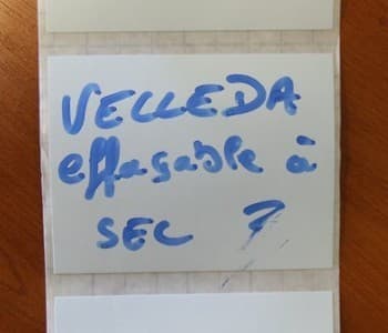 Transformez toute surface en zone d'écriture Selon le principe du tableau Velleda, l'étiquette adhésive effaçable à secest conçue pour identifier de façon temporaire vos contenants.Une solution pérenne L'étiquetteest recouverte d'un vernis spécialement conçu pour rendre la surface effaçable et réinscriptible. La haute résistance du vernis permet de multiples réinscriptions.Idéale pour identifier un contenant qui sera réutilisé, sans de voir le marquer de façon indélébile ; ou pour faire vivre la quantité par un marqueur effaçable.Votre étiquette personnalisée Personnalisez votreétiquetteen choisissant les dimensions, le type d'adhésif (fort ou enlevable), la couleur, la pré-impression (logo, texte, code à barres...)Un produit innovant Gain financier car étiquette réinscriptible Gain de temps car on réécrit sur l'étiquette sans la remplacer Réalisations Etiquette effaçable pré-imprimée pour marquer une boite de vis Avec une étiquette pré-imprimée collée sur une boite de vis vous pouvez savoir à tout moment la quantité de vis restantes en mettant à jour régulièrement cet te information grâce à la partie effaçable et réinscriptible.Etiquette effaçable rigide imprimable