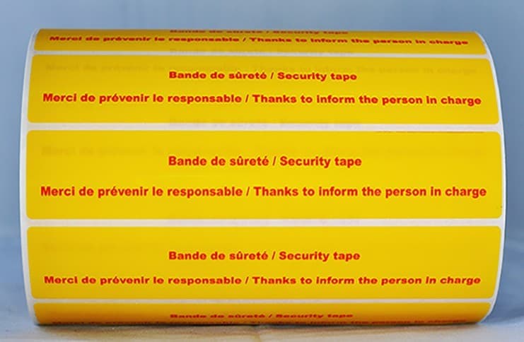 Certains produits nécessites d'être en sécurité, nous avons donc créé un ruban adhésifservant de témoin d'ouverture.Le ruban adhésif de sécurité, avec témoin d'ouverture, permet de sceller une porte, un carton,etc. Le ruban adhésif anti-ouvertureest non repositionnable Lors du retrait de l'étiquette, le message OPEN apparaît sur le support sur le quel elle a été collée. Le ruban repositionné permet de constater la fraude grâce au témoin d'ouverture.